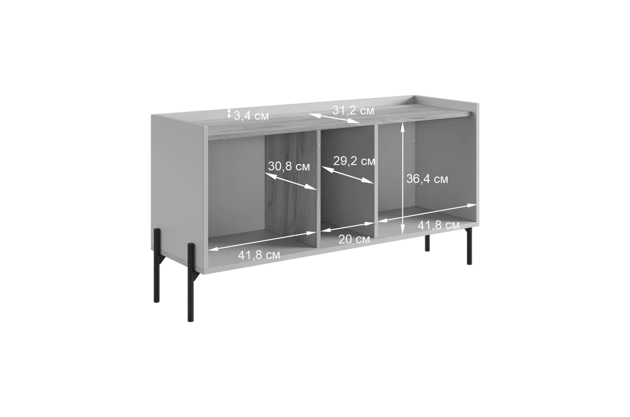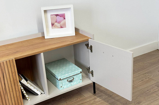 Стильная металлическая ручка придает тумбе современный и модный вид. Открытая ниша обеспечивает легкий доступ к вещам, которые вы используете часто, или может служить пространством для размещения медиа-устройств.