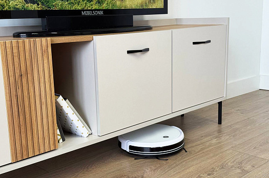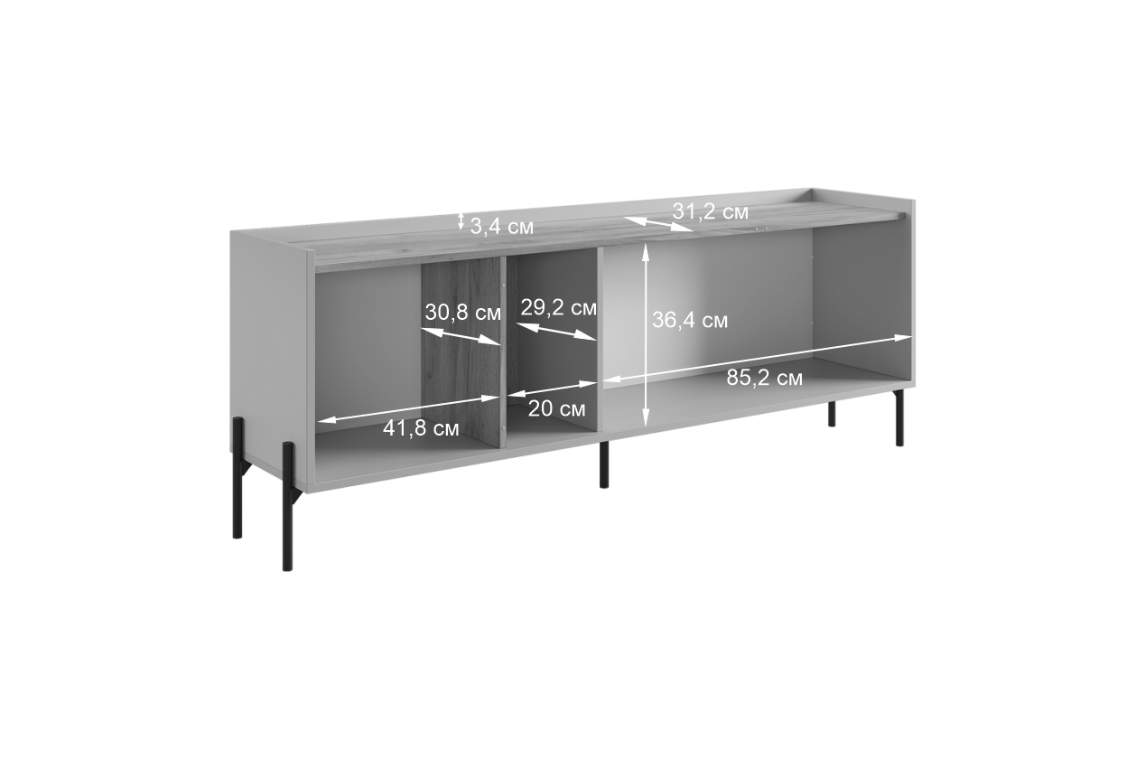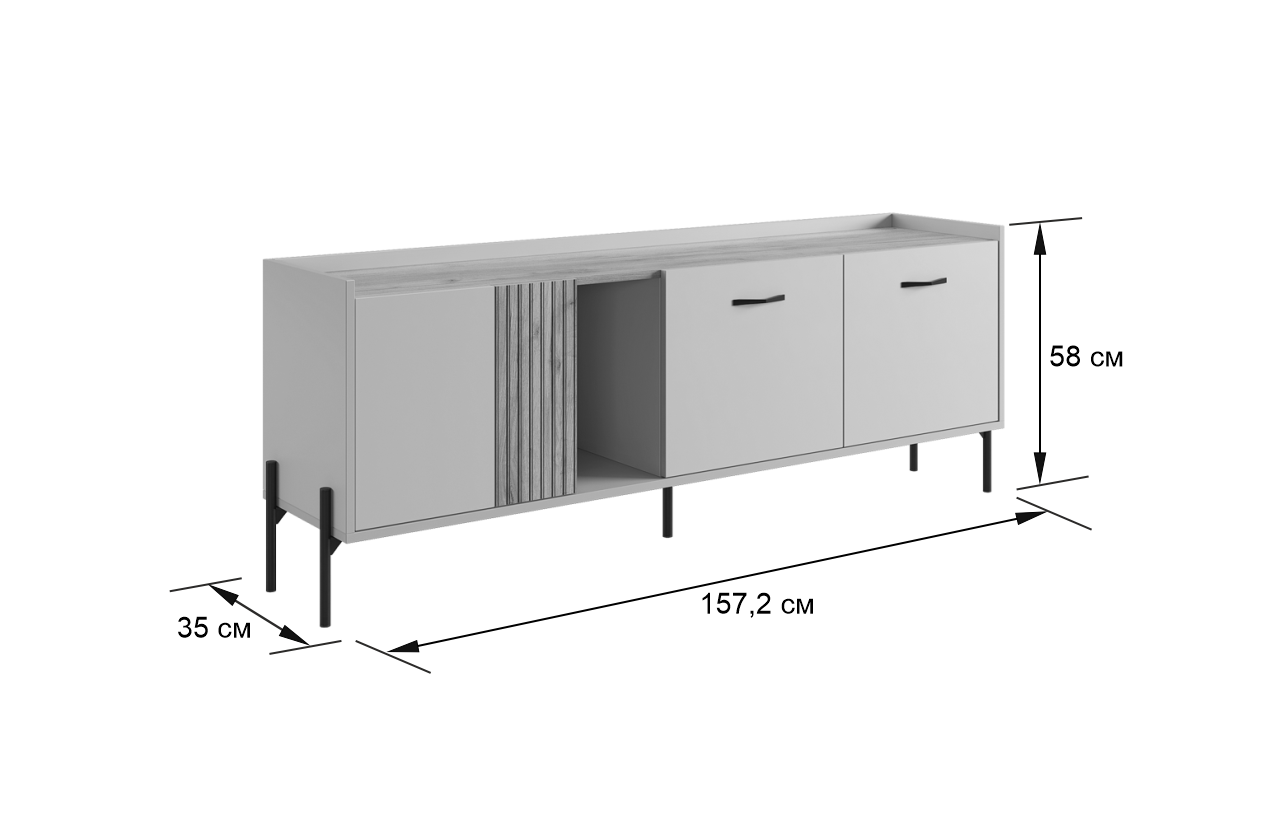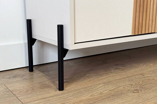 Стильные металлические ручки придают тумбе современный и модный вид. Открытая ниша обеспечивает легкий доступ к вещам, которые вы используете часто, или может служить пространством для размещения медиа-устройств.