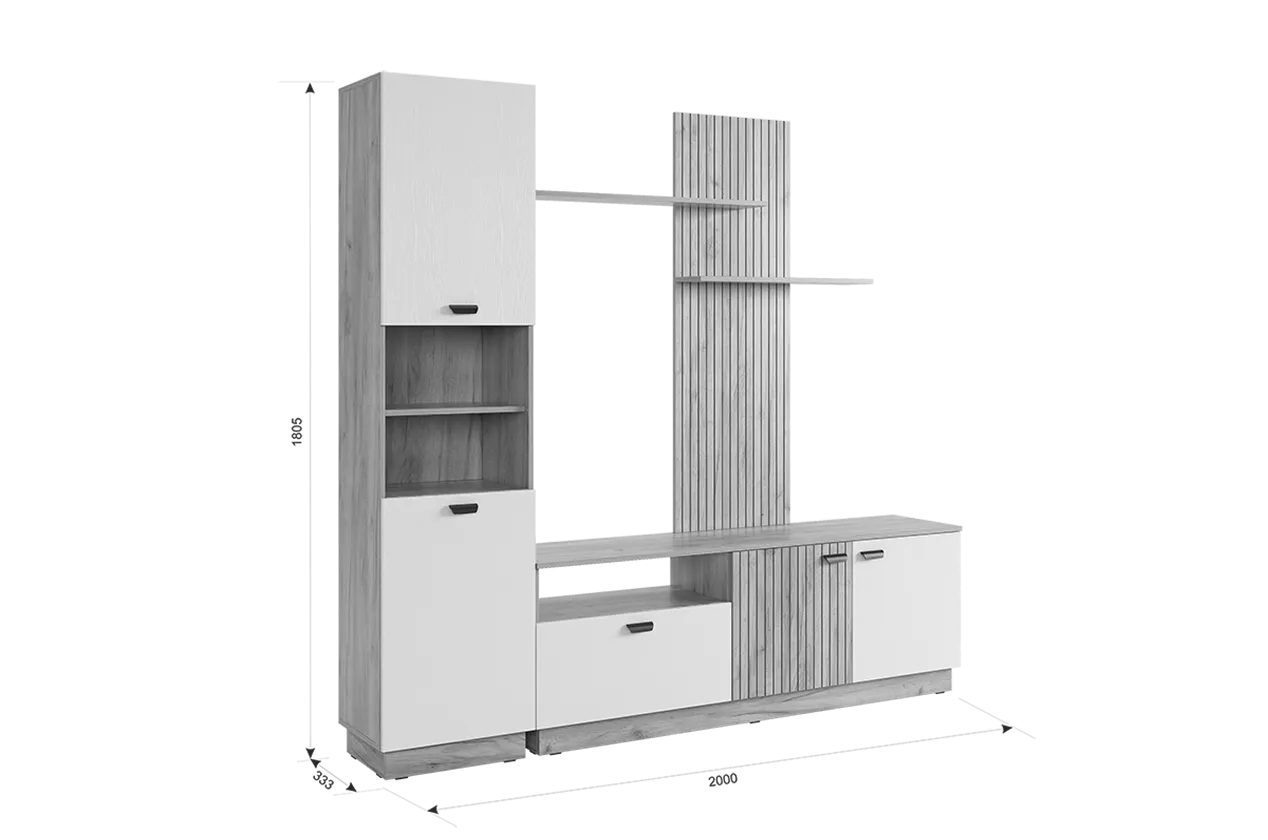 Гостиная "Моди К2" дуб крафт золотой/белое дерево из каталога Модульные гостиные купить в Самаре в магазине мебели онлайн Мебельсон по цене 35 860 ₽
