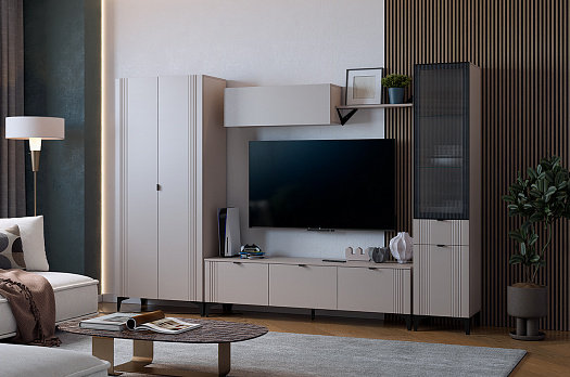 Гостиная "Рич К4" (2850х420х1900 мм) кашемир/фрапучино матовый/черный из каталога Модульные гостиные купить в Самаре в магазине мебели онлайн Мебельсон по цене 70 550 ₽