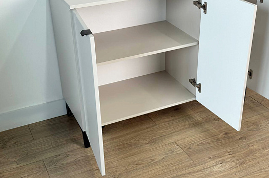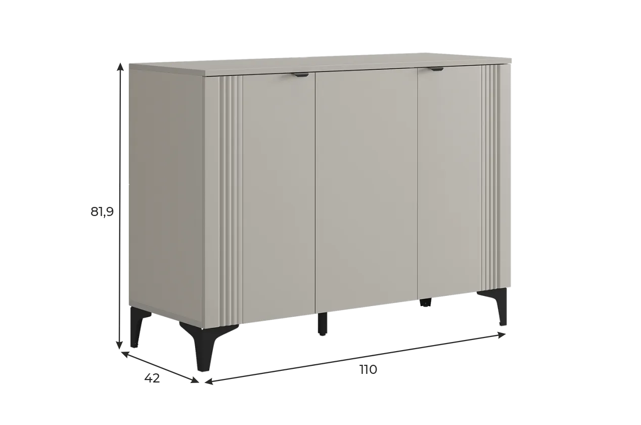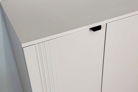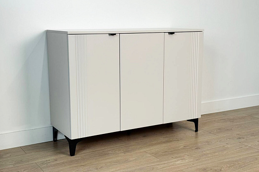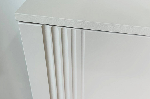 Дверцы комода выполнены из МДФ с фрезеровкой и скрывают за собой просторное хранилище для различных вещей.