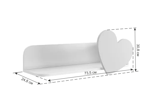Полка навесная Сердечко (белое дерево/пудра розовая (эмаль)) 1шт.