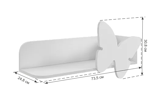 Полка навесная Бабочка (белое дерево/пудра розовая (эмаль)) 1шт.