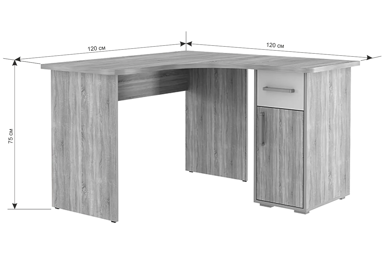 Лайт-1 Стол компьютерный 1200 угловой (дуб сонома/белый)