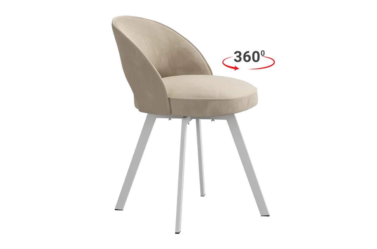 «Моли 2» – мягкий, с обтекаемыми формами, очень уютный и компактный стул, легко впишется в любой интерьер. Он прекрасно подойдет на кухню, столовую зону, рабочий кабинет, стульчик для трюмо или рабочего места ребенка. Анатомически правильная спинка и мягкое сиденье очень комфортны при посадке. Приятный на ощупь велюр; стильный кант по периметру стула подчеркивает его плавные формы. Наличие поворотной площадки дает возможность вращать сиденье на 360 градусов.