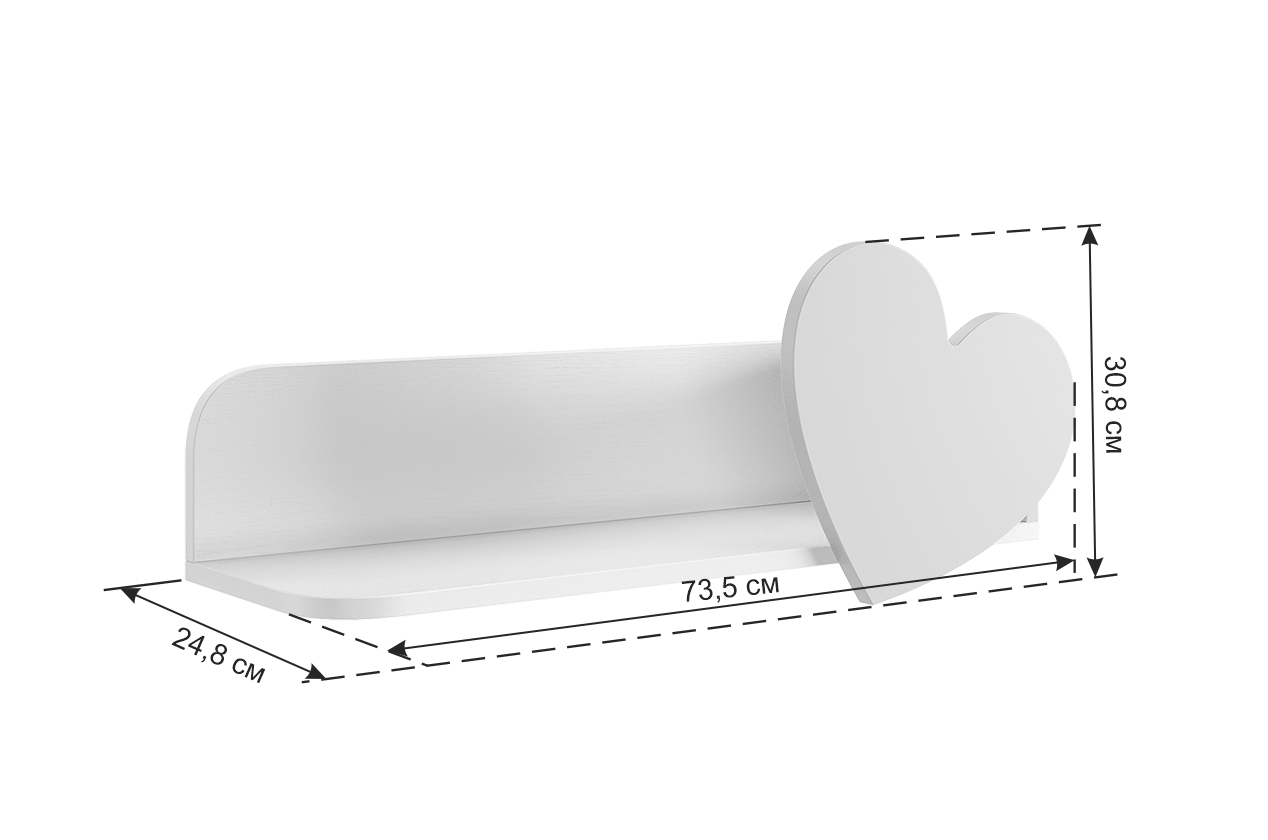 Выбирая навесную полку "Сердечко", вы получаете совершенство и функциональность в одном. Наслаждайтесь расставлением предметов и создайте особенный уголок, который станет истинным притягательным центром в комнате вашего ребенка. Будьте уверены, что продукт выполнен из самых качественных материалов и прослужит вам долгие годы.