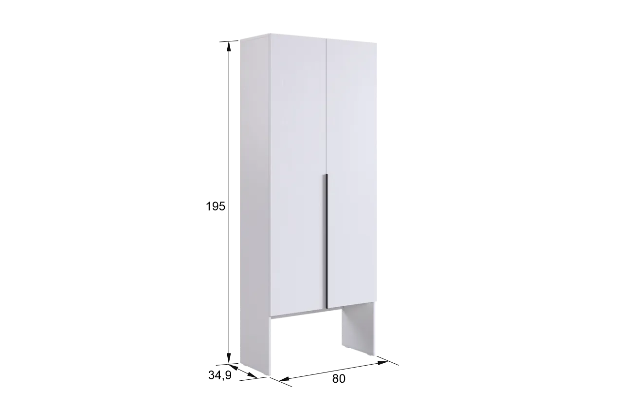 Изготовленный из высококачественного ЛДСП толщиной 16 мм, шкаф гарантирует прочность и долговечность. Длинные пластиковые ручки добавляют современный акцент и удобство в использовании.