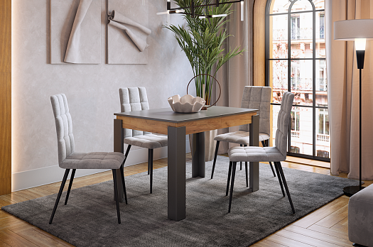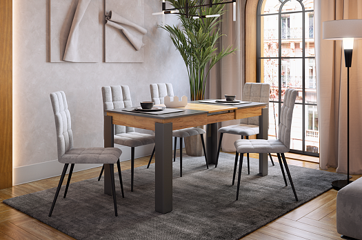 Стол обеденный раздвижной Гермес 2 графит/дуб крафт золотой из каталога Обеденные столы купить в Самаре в магазине мебели онлайн Мебельсон по цене 11 990 ₽