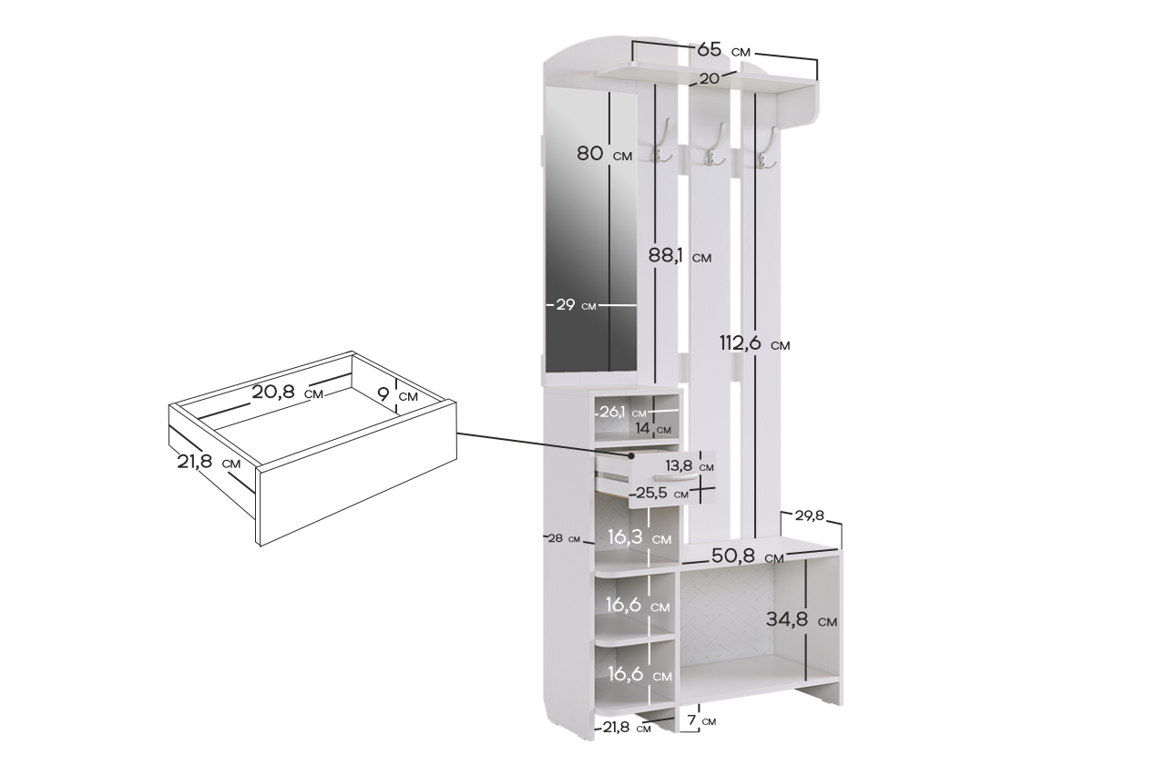 Высота тумбы для обуви: 434 мм.