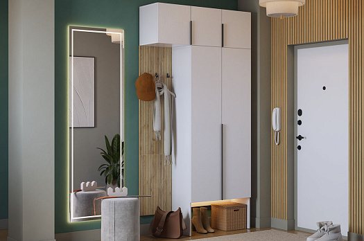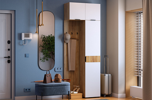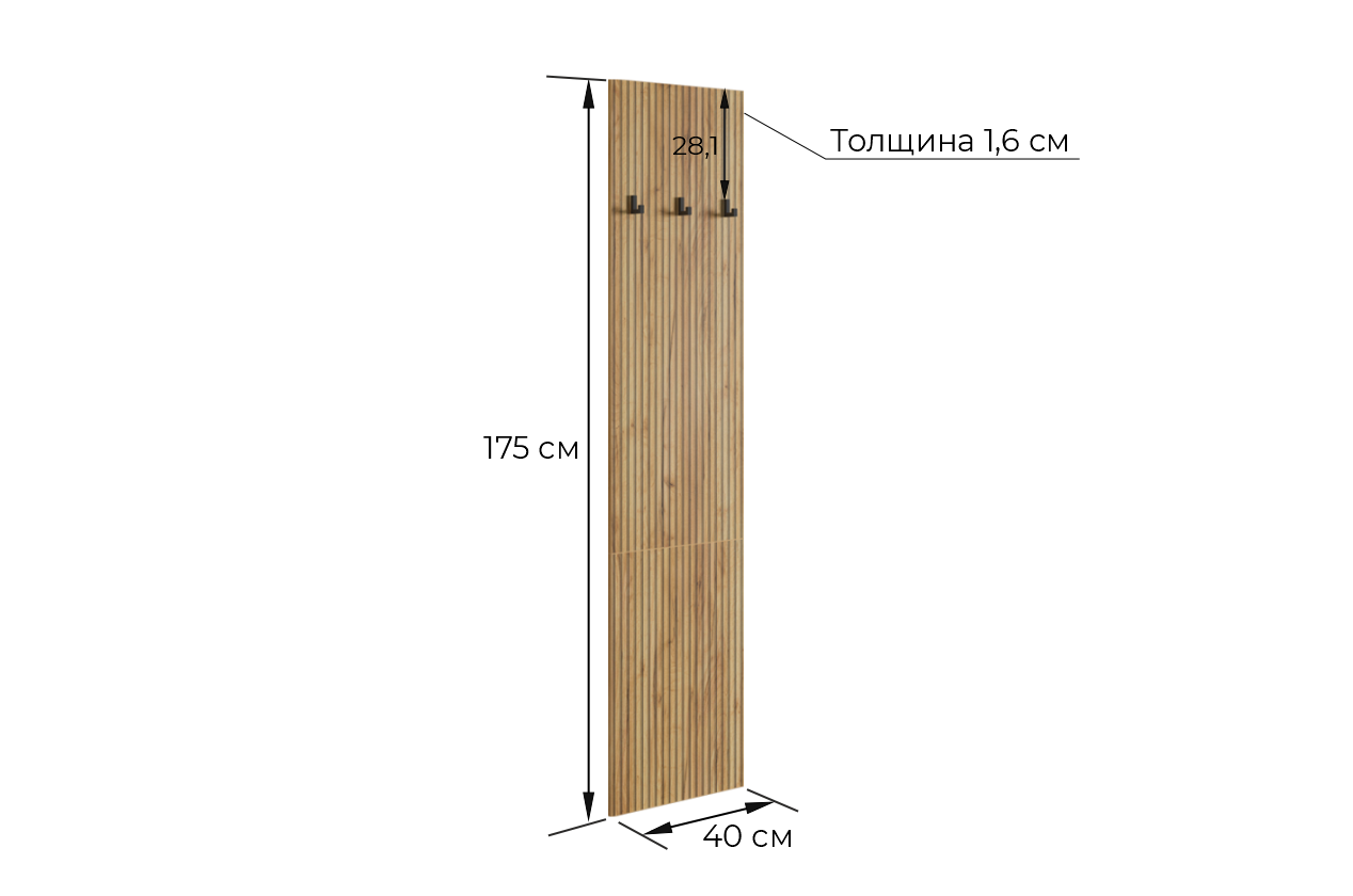 Принт, имитирующий вертикальную фрезеровку придает вешалке уникальный и современный вид, добавляя текстуру и глубину. Материал вешалки – ЛДСП, что обеспечивает прочность и долговечность, а также легкость в уходе.