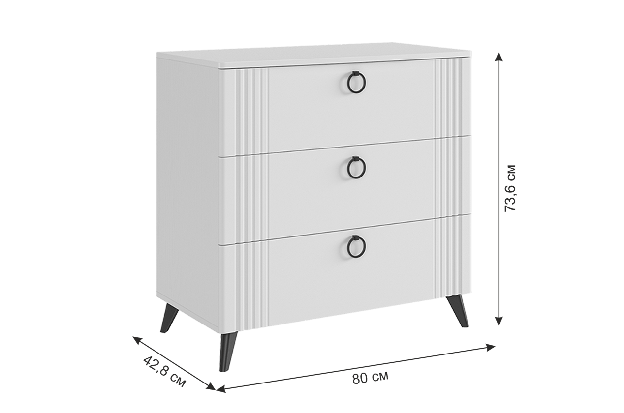 Комод "Ева" идеально сочетает в себе стиль и функциональность. С его размерами 800х428х736 мм он будет отличным дополнением к любому интерьеру. Корпус комода выполнен из ЛДСП в белом деревянном цвете, а фасады - из МДФ, облицованного пленкой ПВХ белого матового цвета. Смело можно сказать, что комод выглядит элегантно. Он оснащен тремя просторными ящиками на шариковых направляющих, что обеспечивает плавное и бесшумное скольжение. Удобные ручки-кнопки добавляют комоду элегантности и обеспечивают удобство использования. Также комод имеет бесшумную систему закрытия фасадов, что делает его идеальным выбором для спален или детских комнат. Пластиковые черные опоры высотой 120 мм придают комоду устойчивсть и добавляют удобство уборки. Комод "Ева" - это не просто место для хранения, это изысканный акцент в интерьере вашего дома, который радует своей красотой и функциональностью на протяжении многих лет. Он создает атмосферу уюта и комфорта, идеально сочетаясь с любыми элементами интерьера и придавая вашему дому неповторимый шарм и элегантность.