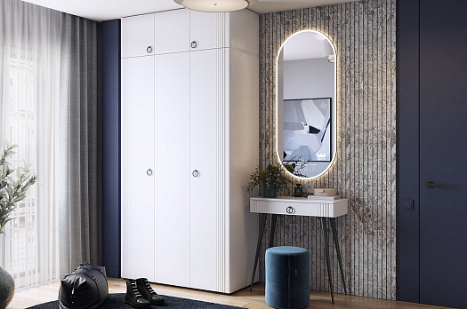 Металлические ручки дополняют общий дизайн, придавая ему эстетичный и современный вид. Сочетание черного и белого цветов делает этот туалетный столик универсальным и легко вписывающимся в любой интерьер.