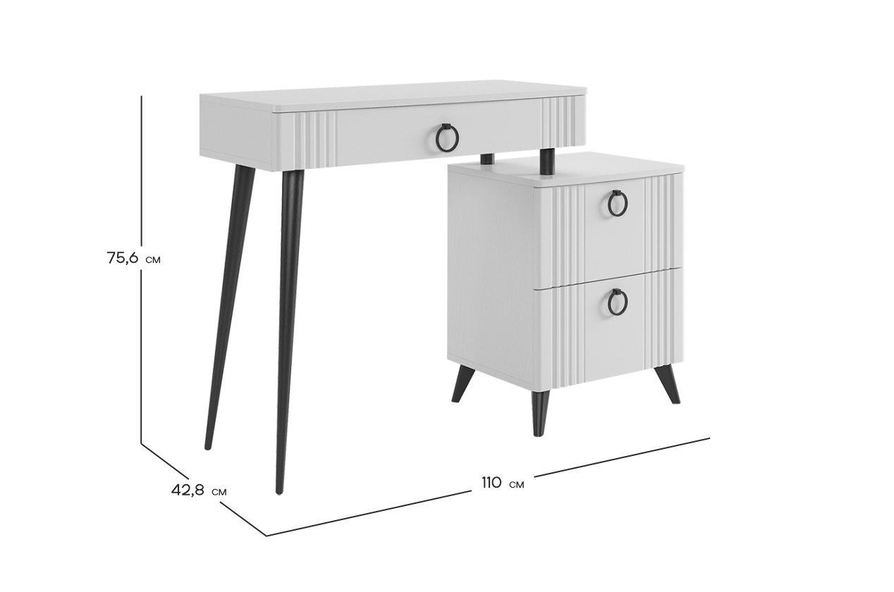 Ева Туалетный столик (без зеркала) белое дерево/белый матовый из каталога Трюмо купить в Самаре в магазине мебели онлайн Мебельсон по цене 11 890 ₽