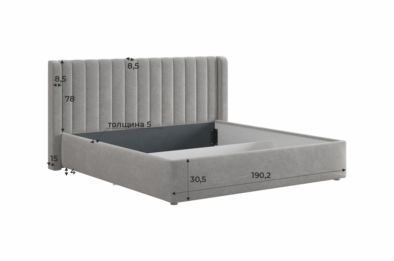 Каркас кровати Ева имеет размеры 180х200 см, что позволяет создать идеальное пространство для полноценного сна. Качественные материалы и точная изготовка гарантируют долговечность этой модели.