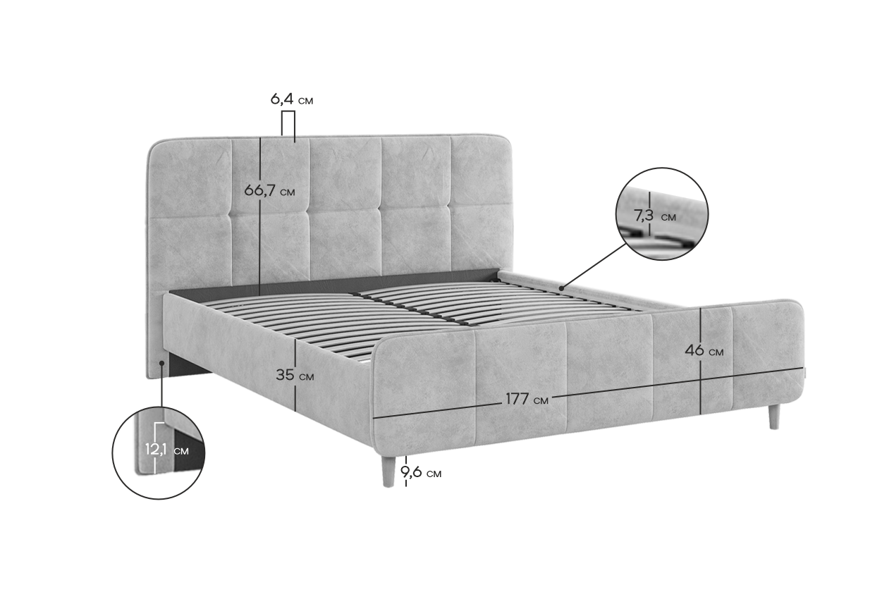 Кровать с основанием Грета 160х200 см грей алькантара (велюр) из каталога Двуспальные кровати купить в Самаре в магазине мебели онлайн Мебельсон по цене 32 890 ₽