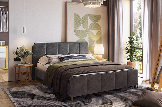Кровать с основанием Грета 160х200 см (грей алькантара (велюр))