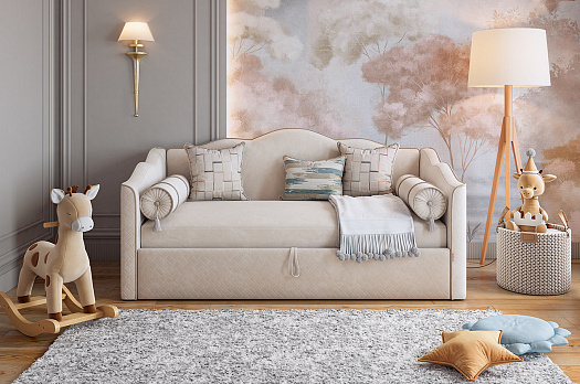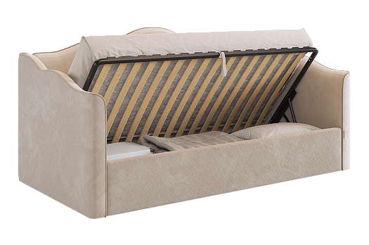 Кровать с подъемным механизмом Лея (Софа) 90х200 см крем (велюр)/латте (велюр) из каталога Детские кровати купить в Самаре в магазине мебели онлайн Мебельсон по цене 51 390 ₽