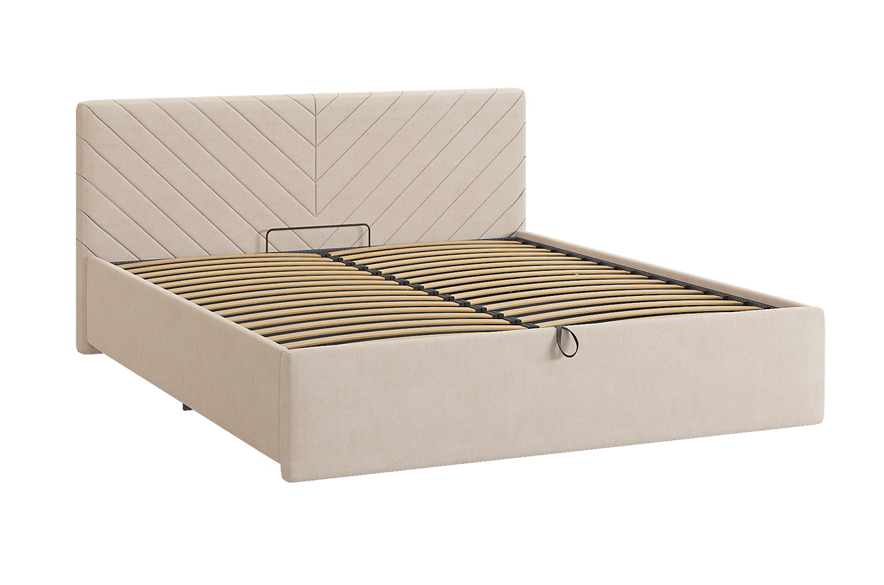 Кровать с подъемным механизмом Сандра 2 160х200 см крем (велюр) из каталога Двуспальные кровати купить в Самаре в магазине мебели онлайн Мебельсон по цене 33 080 ₽