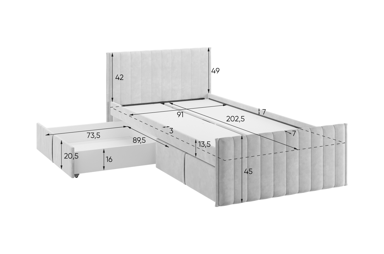 Кровать с ящиками Твикс 90х200 см